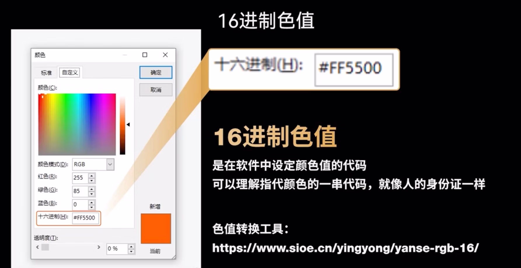 16进制其实是颜色的唯一代码,它与rgb一一对应