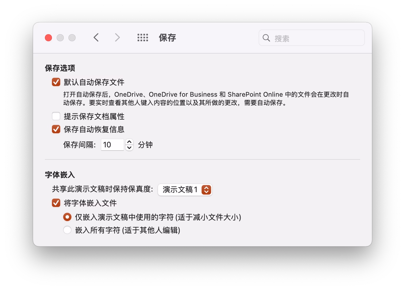 Mac版本需要在偏好设置>保存里勾选嵌入字体