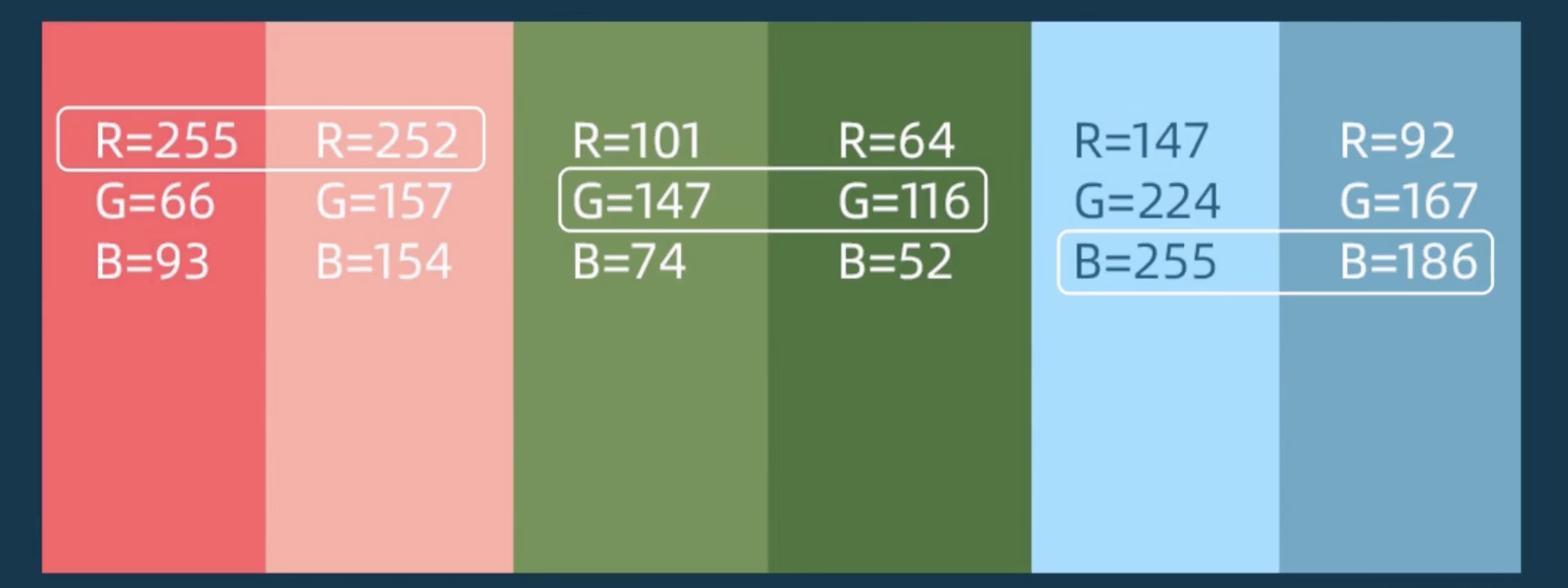 RGB有混合叠加色,R、G、B数值哪个值大,会偏向某个颜色
